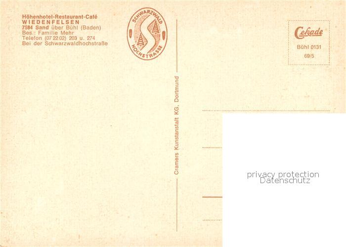 73645600 Sand Buehl Hoehenhotel Restaurant Cafe Wiedenfelsen postalisch nicht gelaufen Erhaltung siehe scans [WerneD78] KatCode: 11110008216007