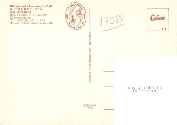 73090237 Sand Buehl Hoehenhotel Wiedenfelsen postalisch nicht gelaufen Erhaltung siehe scans [PaolaD17] KatCode: 11110008216007