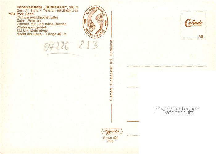 73870552 Sand Buehl Hoehenraststaette Hundseck Gastraeume Terrasse postalisch nicht gelaufen Erhaltung siehe scans [WerneD78] KatCode: 11110008216007