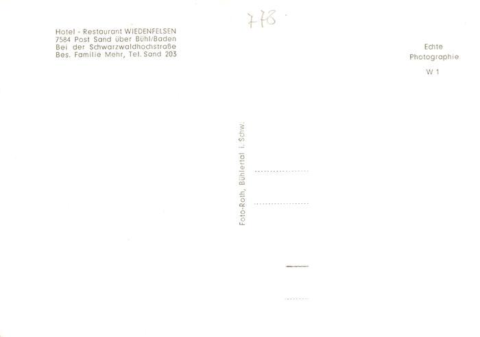 73891334 Sand Buehl Hotel Restaurant Wiedenfelsen postalisch nicht gelaufen Erhaltung siehe scans [WerneD78] KatCode: 11110008216007