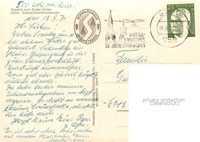 73210495 alte Postkarte Sand Buehl Kapelle zum Guten Hirten postalisch gelaufen Erhaltung siehe scans [FriedD77] KatCode: 11110008216007