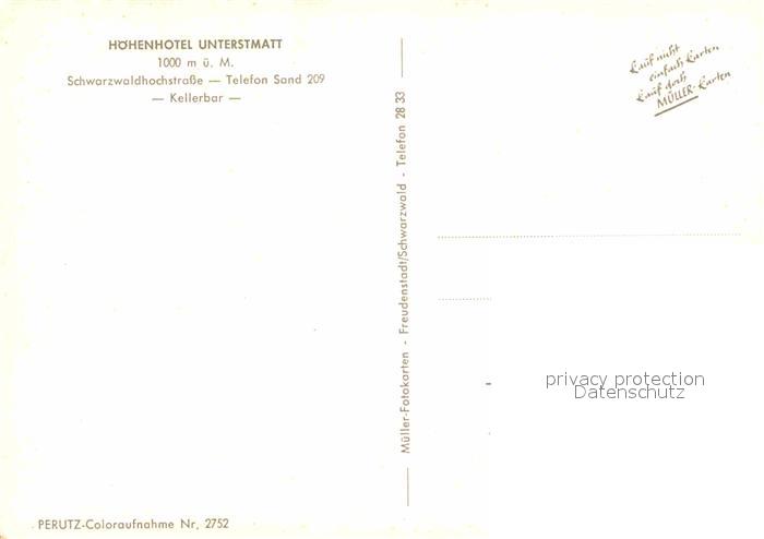 72743254 Sand Buehl Kellerbar Hoehenhotel Unterstmatt Schwarzwaldhochstrasse postalisch nicht gelaufen Erhaltung siehe scans [FriedD77] KatCode: 11110008216007