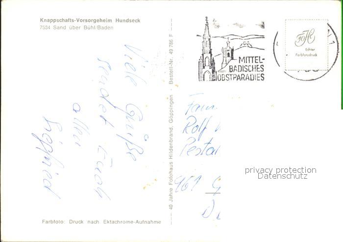 72026727 alte Postkarte Sand Buehl Knappschafts- Vorsorgeheim Hundseck postalisch gelaufen Erhaltung siehe scans KatCode: 11110008216007