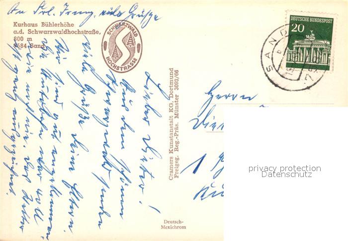 73541971 alte Postkarte Sand Buehl Kurhaus B?hlerh?he postalisch gelaufen Erhaltung siehe scans [LiesaD40] KatCode: 11110008216007