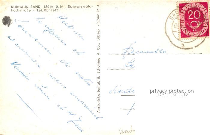 43495709 alte Postkarte Sand Buehl Kurhaus Sand postalisch gelaufen Erhaltung siehe scans [WerneD78] KatCode: 11110008216007