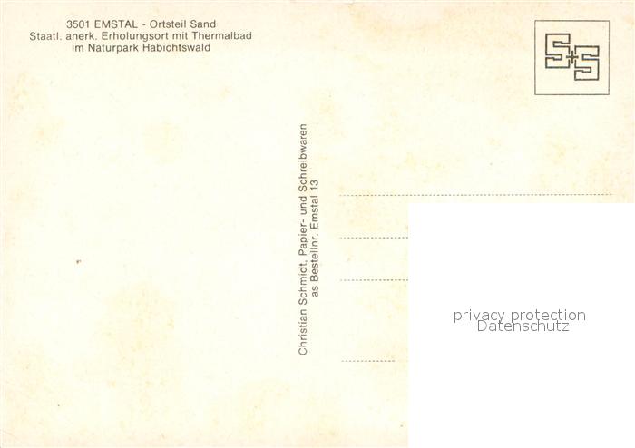 73673450 Sand Emstal Feriendorf Ferienhaeuser Kutschfahrt Kneippanlage Naturpark Habichtswald postalisch nicht gelaufen Erhaltung siehe scans [FriedD77] KatCode: 11110006633006