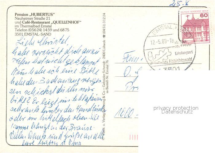 73766742 alte Postkarte Sand Emstal Pension Hubertus Restaurant Quellenhof Thermalbad postalisch gelaufen Erhaltung siehe scans [FriedD77] KatCode: 11110006633006