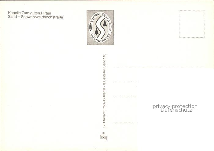 71847444 Sand Schwarzwaldhochstrasse Kapelle zum guten Hirten postalisch nicht gelaufen Erhaltung siehe scans KatCode: 11110008336050