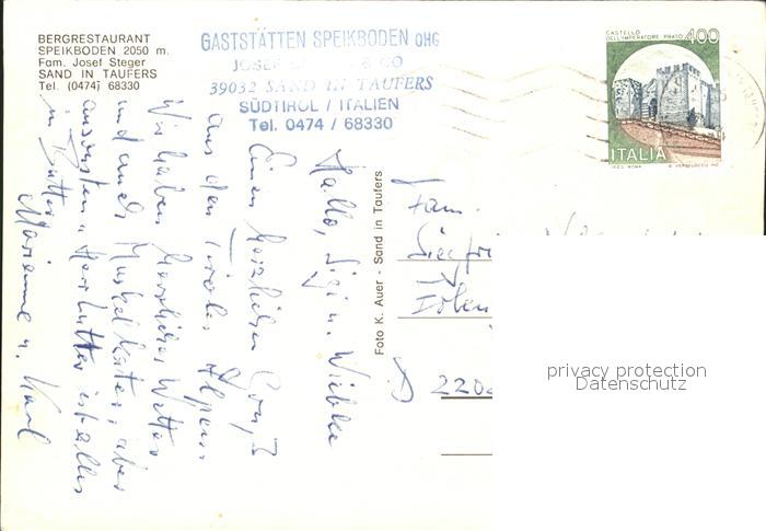 old postcard Sand Taufers Bergrestaurant Speikboden postalisch gelaufen Erhaltung siehe scans