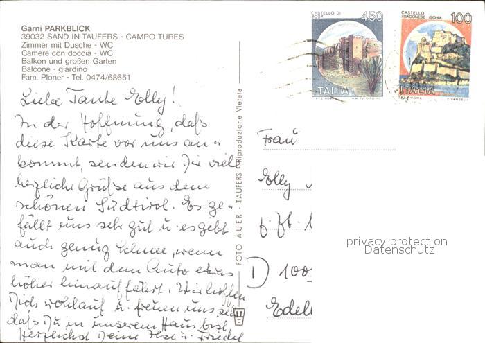 old postcard Sand Taufers Garni Parkblick postalisch gelaufen Erhaltung siehe scans