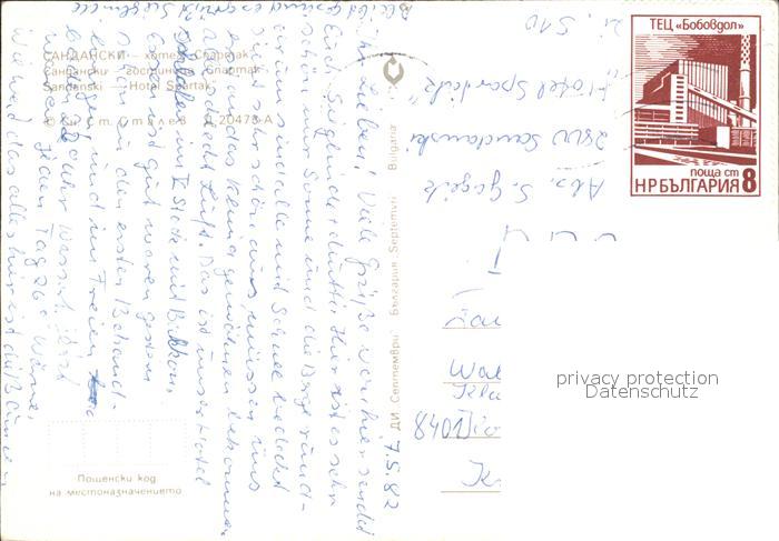 old postcard Sandanski Hotel Spartak postalisch gelaufen Erhaltung siehe scans