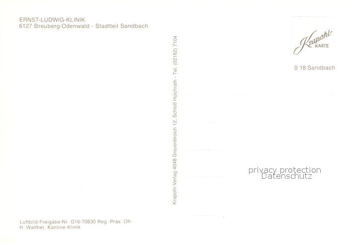 73173953 Sandbach Hessen Fliegeraufnahme Ernst-Ludwig-Klinik postalisch nicht gelaufen Erhaltung siehe scans [NatalD47] KatCode: 11110006437004