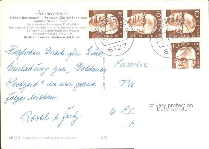 72567231 alte Postkarte Sandbach Hessen Restaurant Pension Zur Schoenen Aussicht Scheuermanns postalisch gelaufen Erhaltung siehe scans [LiesaD40] KatCode: 11110006437004