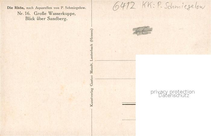 73705524 Sandberg Fulda Blick ueber Sandberg Kuenstlerkarte P. Schmiegelon postalisch nicht gelaufen Erhaltung siehe scans [LiesaD40] KatCode: 11110006631010