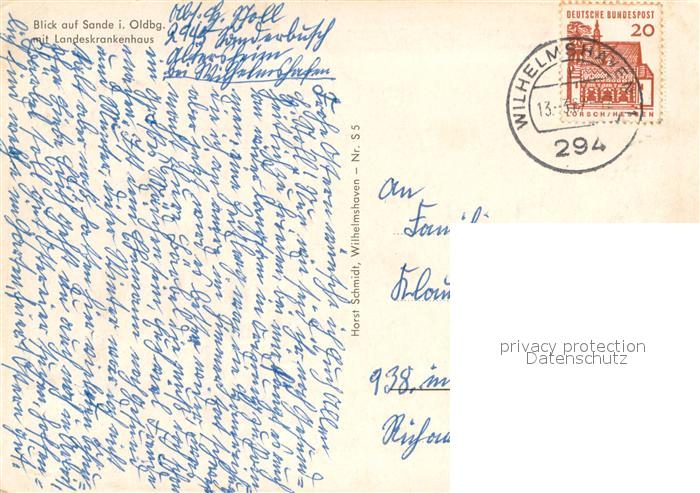 73679219 alte Postkarte Sande Friesland Fliegeraufnahme mit Landeskrankenhaus postalisch gelaufen Erhaltung siehe scans [LiesaD40] KatCode: 11110003455014