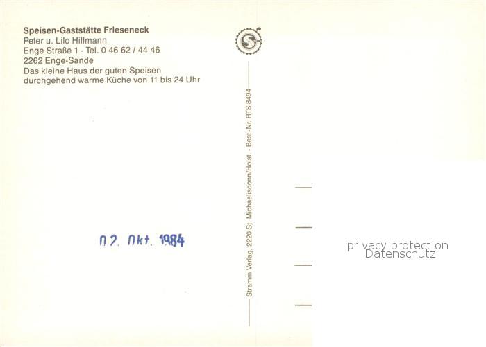 73763962 Sande Friesland Speisen Gaststaette Frieseneck Gastraeume Terrasse postalisch nicht gelaufen Erhaltung siehe scans [FriedD77] KatCode: 11110003455014