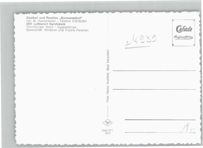 40687378 Sandebeck Gasthof Pension Germanenhof KatCode 11110005762032