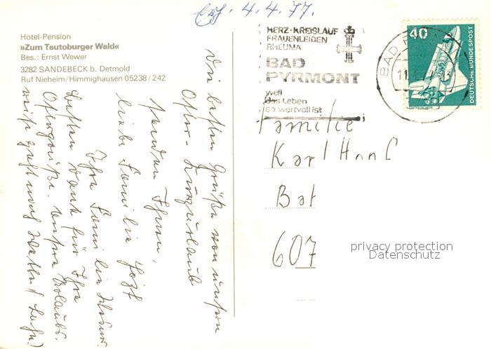 73262785 alte Postkarte Sandebeck Hotel Pension Zum Teutoburger Wald postalisch gelaufen Erhaltung siehe scans [LiesaD40] KatCode: 11110005762032