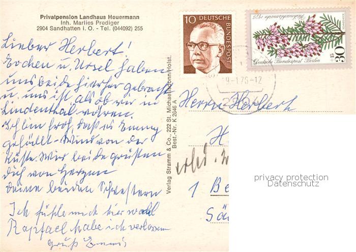73866597 alte Postkarte Sandhatten Landhaus Heuermann Gastraeume postalisch gelaufen Erhaltung siehe scans [WerneD78] KatCode: 11110003458009