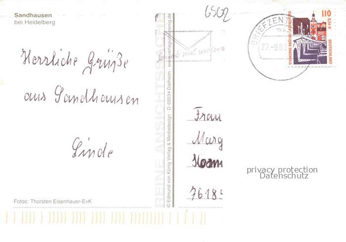 74048928 alte Postkarte Sandhausen Baden Markt Brunnen Statuen Rathaus Kirche postalisch gelaufen Erhaltung siehe scans [WerneD78] KatCode: 11110008226076