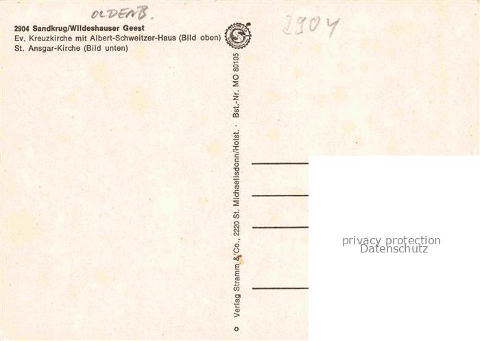 74152257 Sandkrug Oldenburg Hatten Niedersachsen Ev Kreuzkirche mit Albert Schweitzer Haus St Ansgar Kirche postalisch nicht gelaufen Erhaltung siehe scans [WerneD78] KatCode: 11110003458009