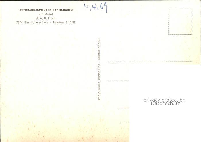 72125141 Sandweier Autobahn Rasthaus Baden Baden postalisch nicht gelaufen KatCode: 11110008211000