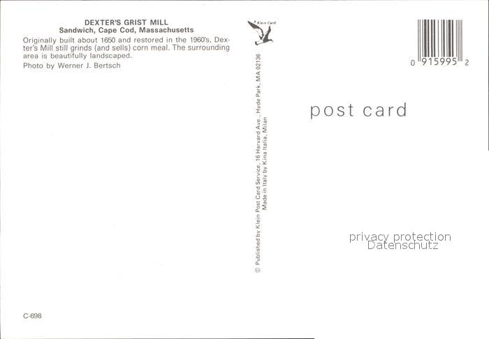 72556315 Sandwich Massachusetts Dexter’s Grist Mill postalisch nicht gelaufen Erhaltung siehe scans [AndreD76] KatCode: 14140230000000