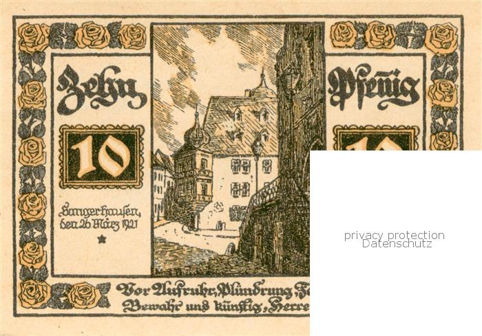 73776394 Sangerhausen Suedharz 10 Pfennig Notgeld postalisch nicht gelaufen Notgeldschein (keine Postkarte) Erhaltung siehe scans [FriedD77] KatCode: 11110015087370