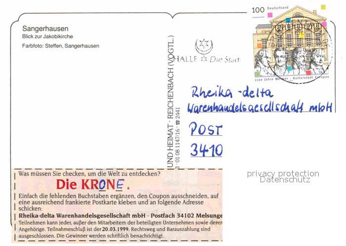 72903816 alte Postkarte Sangerhausen Suedharz Blick zur Jakobikirche postalisch gelaufen Erhaltung siehe scans [FriedD77] KatCode: 11110015087370