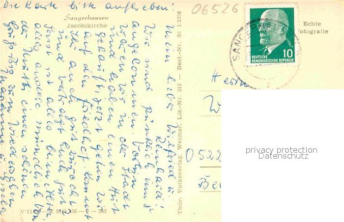 72892339 alte Postkarte Sangerhausen Suedharz Jacobikirche postalisch gelaufen Erhaltung siehe scans [KathaD81] KatCode: 11110015087370