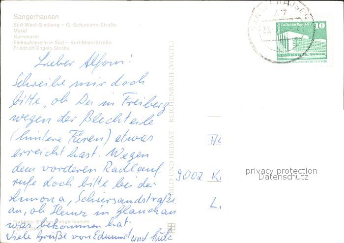 72125019 alte Postkarte Sangerhausen Suedharz Kornmarkt Sued-West-Siedlung postalisch gelaufen Erhaltung siehe scans KatCode: 11110015087370