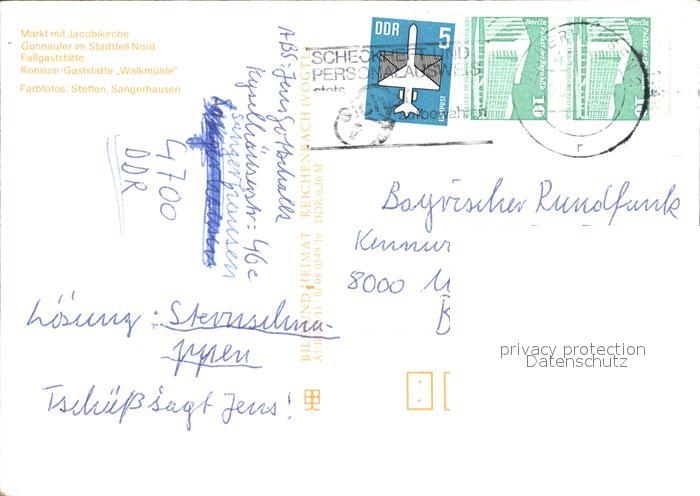 72461693 alte Postkarte Sangerhausen Suedharz Markt Jacobikirche Fassgaststaette Gonnaufer postalisch gelaufen Erhaltung siehe scans KatCode: 11110015087370