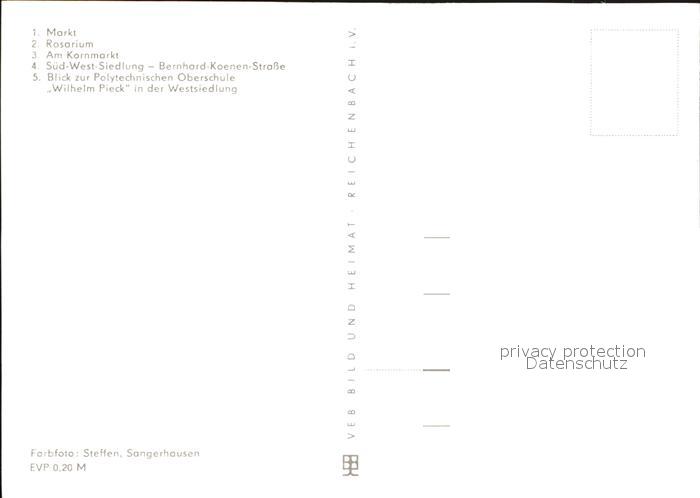 72550731 Sangerhausen Suedharz Markt Rosarium Kornmarkt Wilhelm Pieck postalisch nicht gelaufen Erhaltung siehe scans [KathaD79] KatCode: 11110015087370