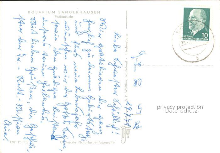 72118956 alte Postkarte Sangerhausen Suedharz Rosarium Parkansicht postalisch gelaufen KatCode: 11110015087370