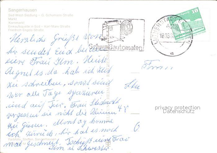 72369912 alte Postkarte Sangerhausen Suedharz Sued West Siedlung Markt Kornmarkt Karl Marx Strasse postalisch gelaufen Erhaltung siehe scans KatCode: 11110015087370