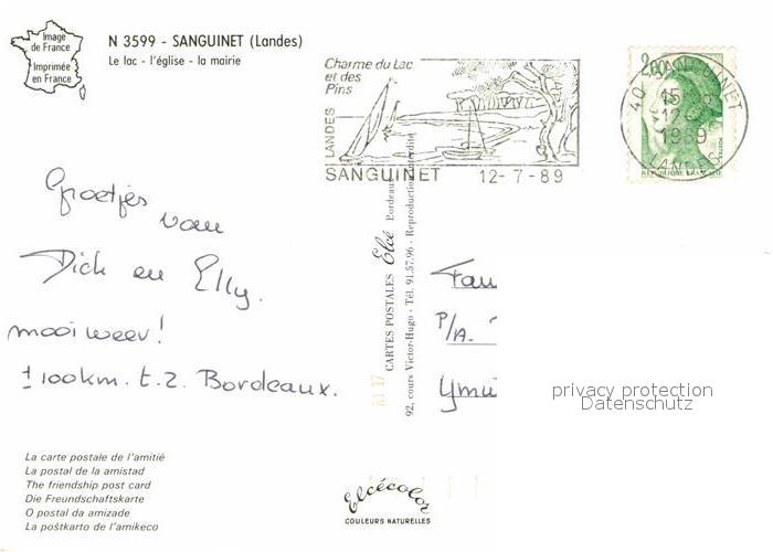 12856685 carte postale Sanguinet Strand Kirche postalisch gelaufen Erhaltung siehe scans [LiesaD40] KatCode: 11170040240287