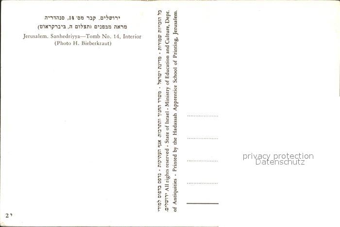 Sanhedriyya Tomb No. 14 Interior postalisch nicht gelaufen Erhaltung siehe scans