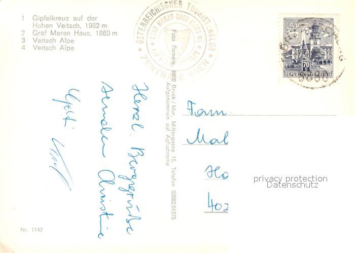 73288734 alte Postkarte Sankt Barbara Muerztal Graf Meran Haus Hohe Veitsch postalisch gelaufen Erhaltung siehe scans [NatalD47] KatCode: 11390223061311