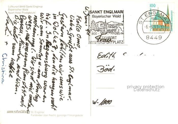 73740322 alte Postkarte Sankt Englmar Apart Hotel Predigtstuhl Bayerischer Wald Fliegeraufnahme postalisch gelaufen Erhaltung siehe scans [FriedD77] KatCode: 11110009278184