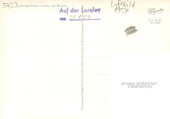 73699228 Sankt Goarshausen Loreley mit Rheintal postalisch nicht gelaufen Fliegeraufnahme Erhaltung siehe scans [FriedD77] KatCode: 11110007141121