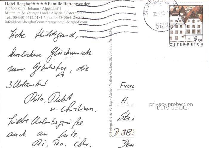 72293011 alte Postkarte Sankt Johann Pongau Hotel Berghof postalisch gelaufen Erhaltung siehe scans KatCode: 11390322050418