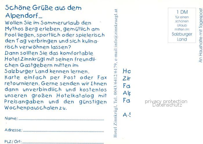 12983750 Sankt Johann Pongau Hotel Zinnkruegl postalisch nicht gelaufen Werbekarte (keine Postkarte) Erhaltung siehe scans [AndreD76] KatCode: 11390322050418