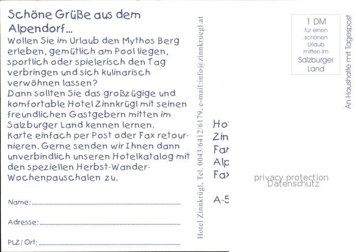 72528483 Sankt Johann Pongau Hotel Zinnkruegl Alpendorf im Salzburger Land postalisch nicht gelaufen Erhaltung siehe scans KatCode: 11390322050418