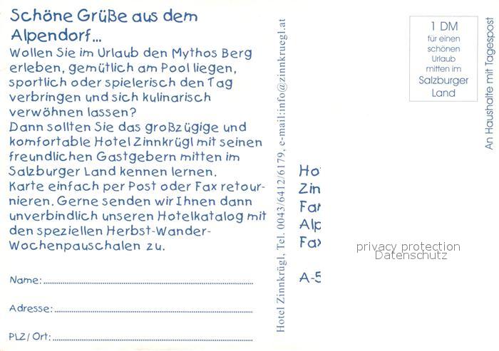 73339407 Sankt Johann Pongau Hotel Zinnkruegl Familie Mayr postalisch nicht gelaufen Werbekarte (keine Postkarte) Erhaltung siehe scans [LiesaD40] KatCode: 11390322050418