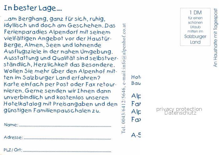 72802840 Sankt Johann Pongau Hotelanlage Bauernhof & Stadl Alpenhof Gschwandl Alpenblick postalisch nicht gelaufen Werbekarte (keine Postkarte) Erhaltung siehe scans [FriedD77] KatCode: 11390322050418