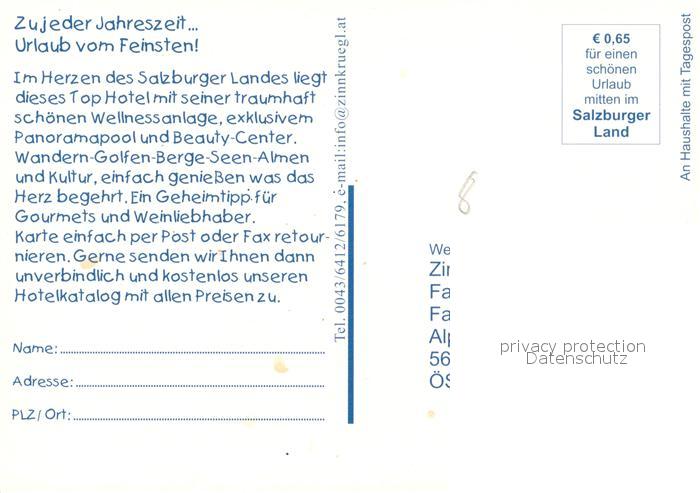 73050805 Sankt Johann Pongau Wellness Gourmet Relax Hotel Zinnkruegl postalisch nicht gelaufen Werbekarte (keine Postkarte) Erhaltung siehe scans [KathaD81] KatCode: 11390322050418
