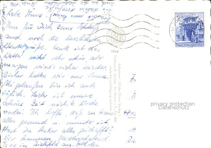 72462981 alte Postkarte Sankt Johann Tirol Pension Klingler postalisch gelaufen Erhaltung siehe scans KatCode: 11390