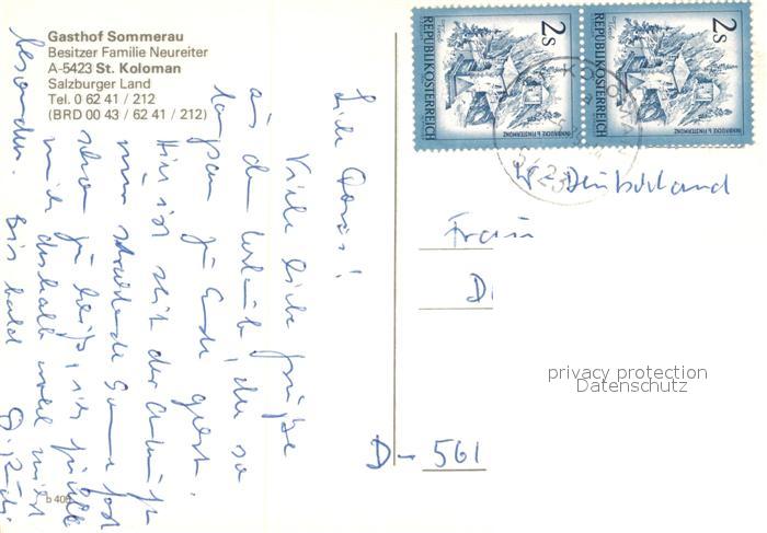 73363569 alte Postkarte Sankt Koloman Gasthof Sommerau Terrasse postalisch gelaufen Erhaltung siehe scans [FriedD77] KatCode: 11390323050211