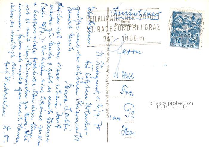 72986208 alte Postkarte Sankt Radegund Graz Panorama Bergbahn Kalvarienberg Bergkirche Kurhaus postalisch gelaufen Erhaltung siehe scans [FriedD77] KatCode: 11390221060642