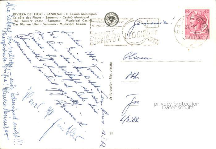 old postcard Sanremo Blumenufer Casino postalisch gelaufen Erhaltung siehe scans